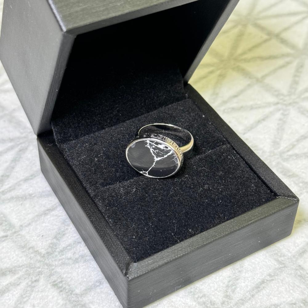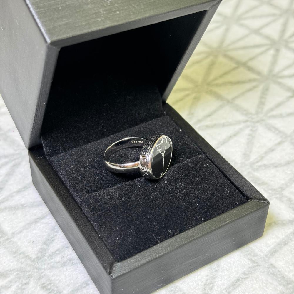 خاتم فضة ملكي اسود معرّق بنقش جانبي مميز